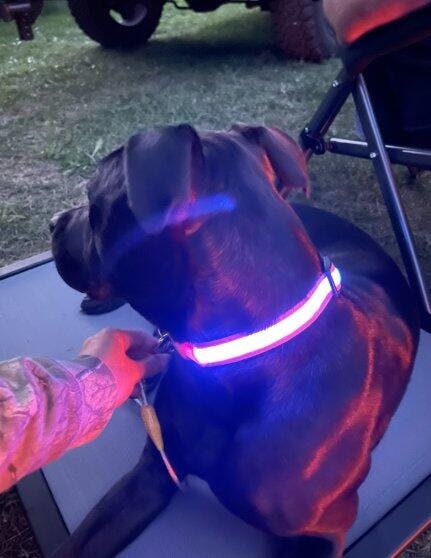 Honestly didn’t expect the collar to look THIS good. The glow is clean and bright, and my dog actually gets excited when I put it on. Makes our evening walks so fun. Here is a picture of him in the dark and during the day!